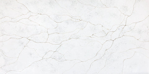 Quartzite-inspired quartz, featuring a white background with delicate taupe and grey veining. We hope to bring this feeling of gentle awakening to Ostara Dawn through undulating drifts of threads across a brilliant white surface, exploring the movement of shadow across golden sand, the coolness of the air and brilliant flashes of morning light. Ostara Dawn invites you to explore the liminal beauty of a waking desert somewhere between the cloak of darkness and the fire of daylight sun.