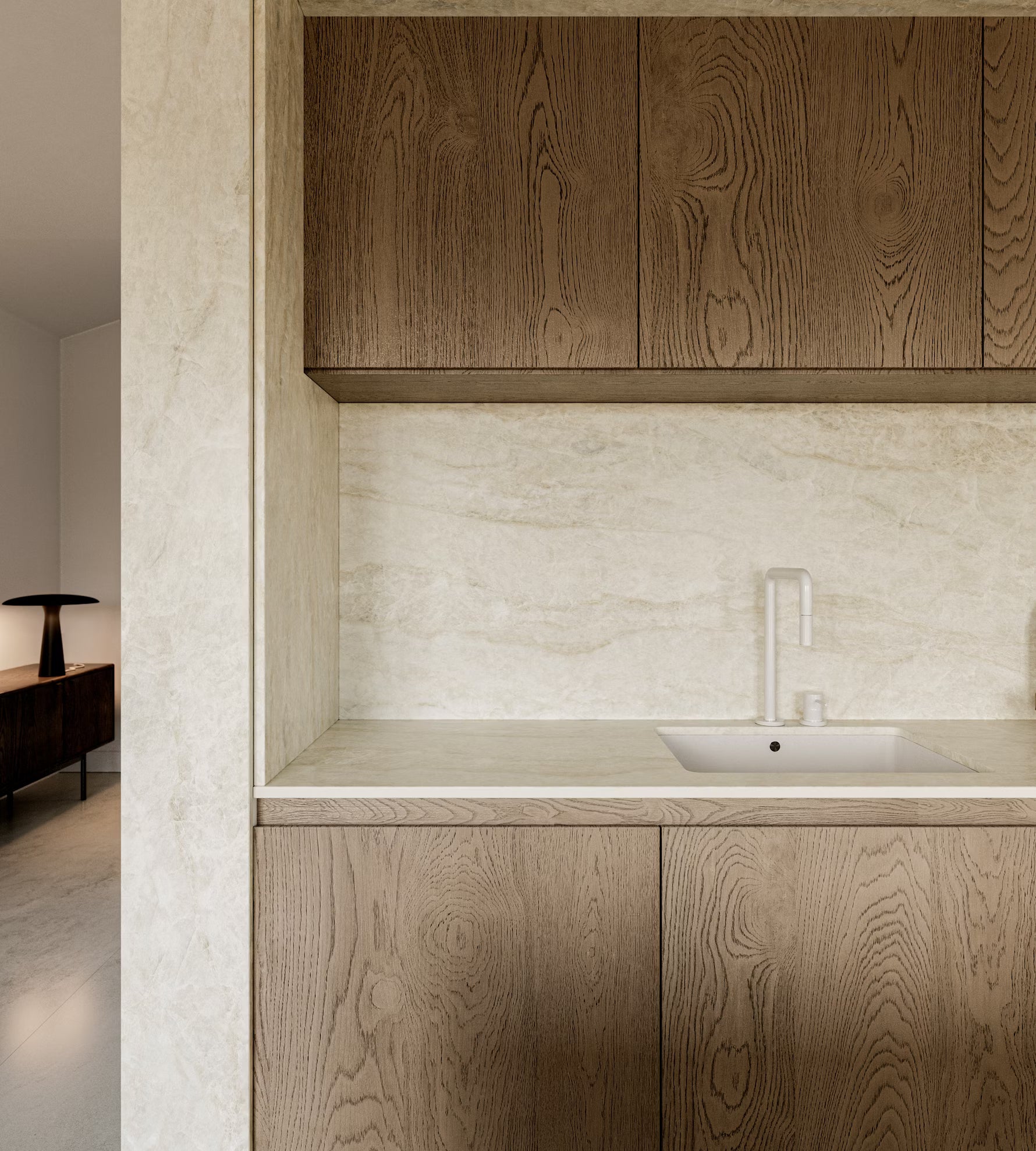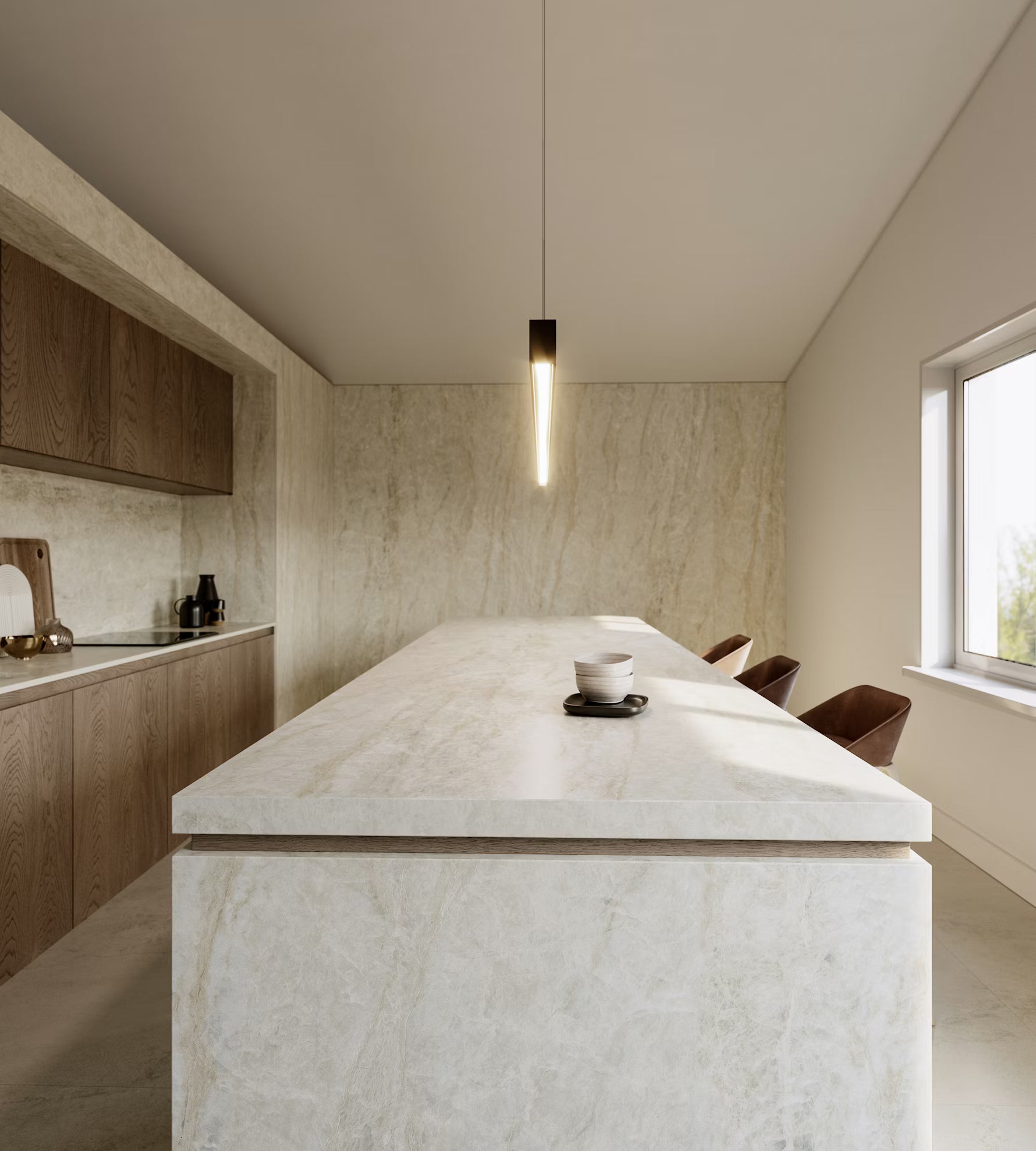 Nara brings understated luxury to any room with its dreamy beige palette and whisper-soft veining. Think Taj Mahal quartzite's timeless charm, but with a modern twist and a silky finish that practically invites you to run your hand across it. The luminous background and delicate patterns create an atmosphere of calm sophistication—perfect for anyone who wants their countertops to feel like a gentle hug. Versatile enough to play well with virtually any design style, Nara proves that elegance doesn't need to shout to be heard.