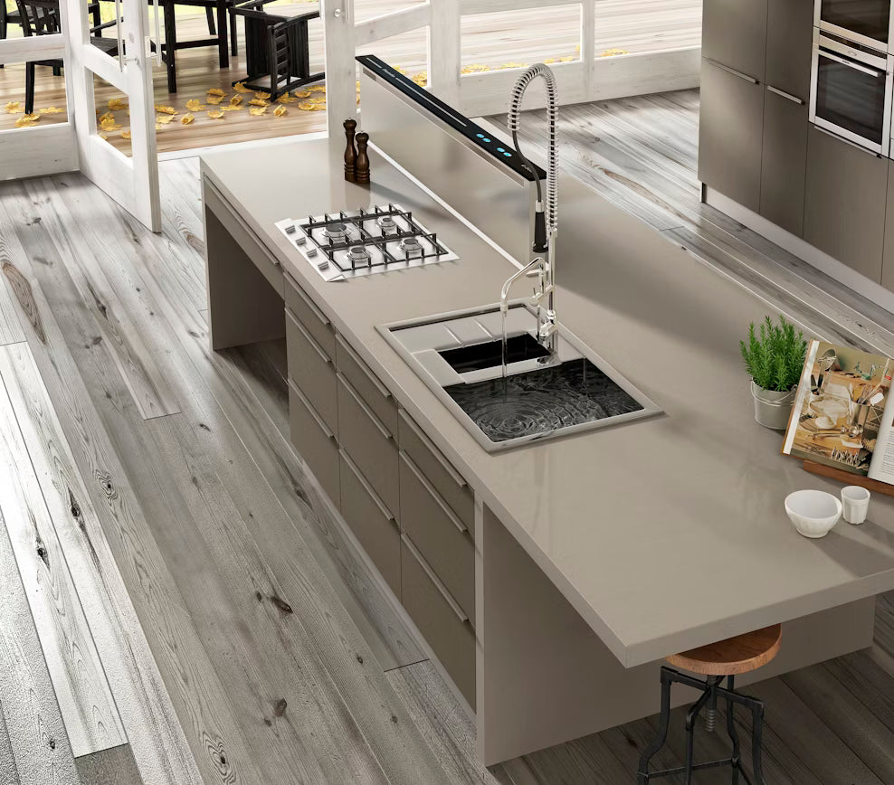 Silestone is a low-silica mineral surface composed of premium minerals and recycled materials. Its revolutionary Hybriq+® technology effectively reduces crystalline silica content, resulting in an innovative, sustainable, and high-performance mineral surface.